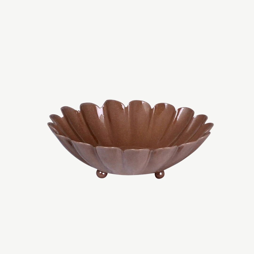 Różowa ozdobna miska z metalu. Miseczka jest ręcznie wytwarzana w Indiach.