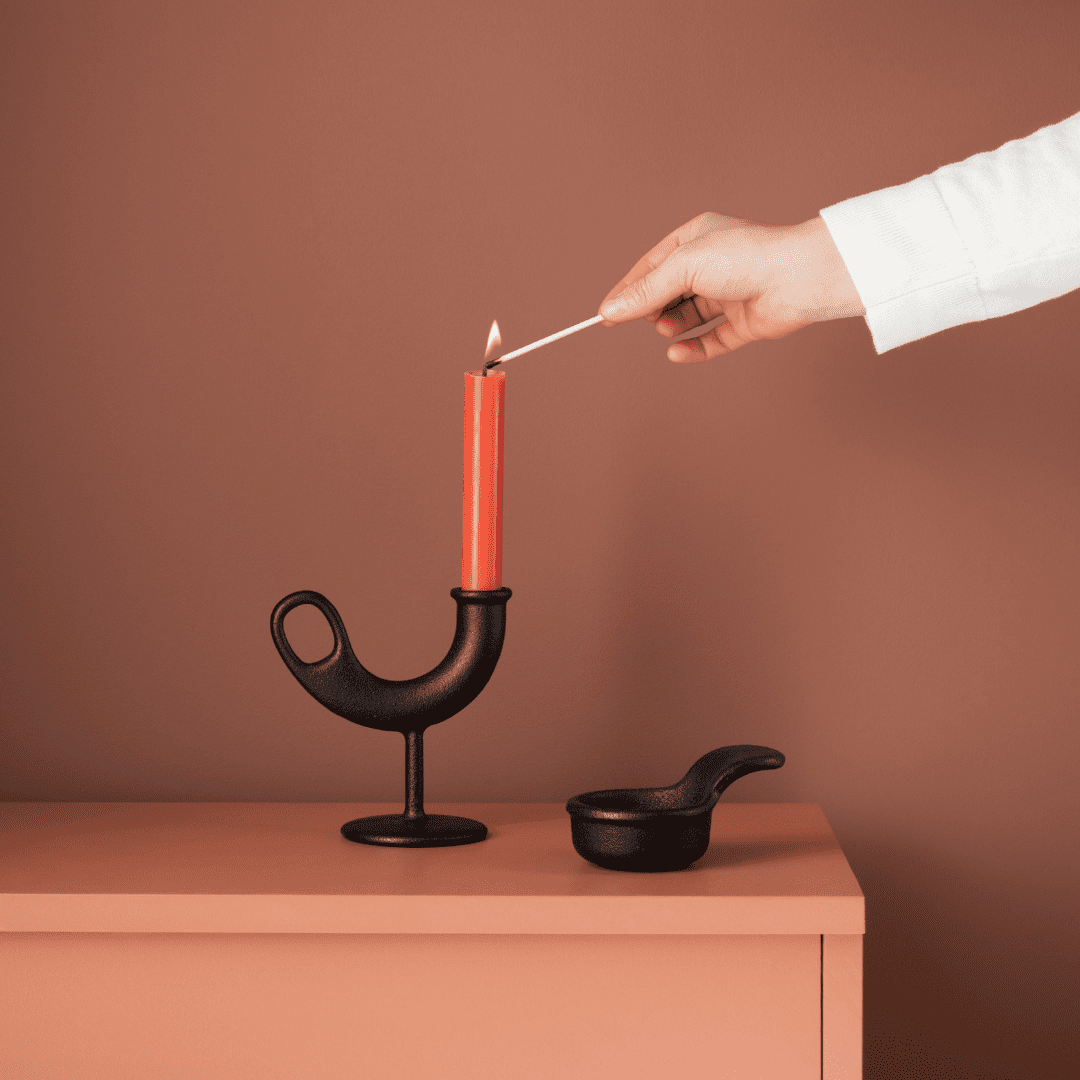 Świecznik żeliwny zaprojektowany przez norweską parę projektantów Anderssen & Voll został nazwany na cześć dwóch norweskich słów oznaczających ogień („lld”) i koguta („hane”)